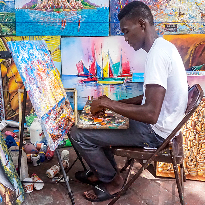 | Jacmel | Jacmel est une ville portuaire sur la côte sud de Haïti. Dans le centre-ville, on trouve de nombreux bâtiments de style colonial, notamment la Maison Cadet datant du XIXe siècle, avec son toit rouge conique. Le musée Salubria, aménagé dans une vieille maison, abrite des œuvres d'art haïtiennes. À l'ouest de la ville, le Bassin Bleu est constitué de bassins alimentés par des cascades et entourés d'une végétation luxuriante. À l'est, Raymond les Bains est une plage de sable très fréquentée. ― Google Superficie : 443,9 km² Altitude : 43 m Population : 137 966 (2019) Heure locale : mardi 07:33 Coordonnées : 18° 14′ 03″ N, 72° 32′ 05″ O |